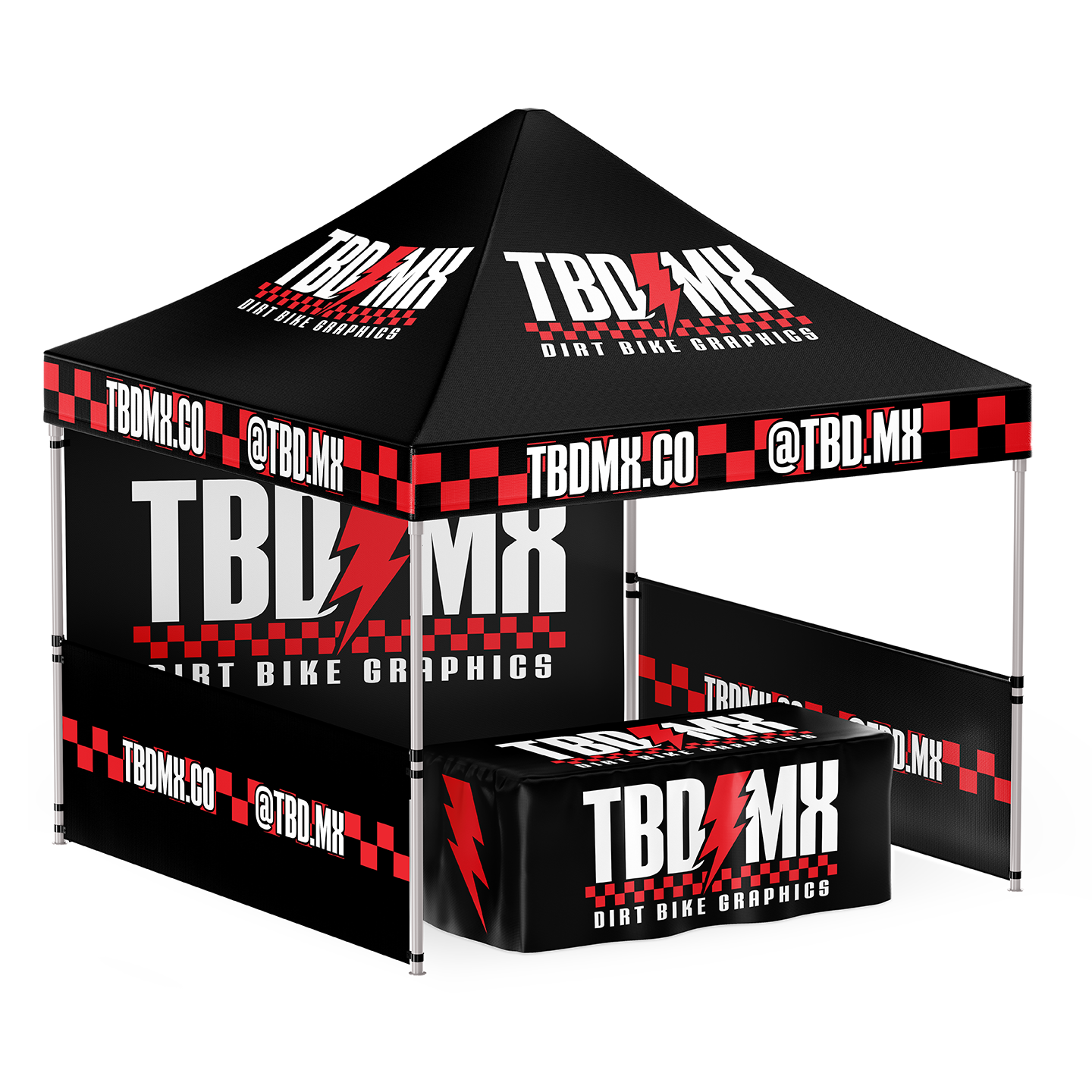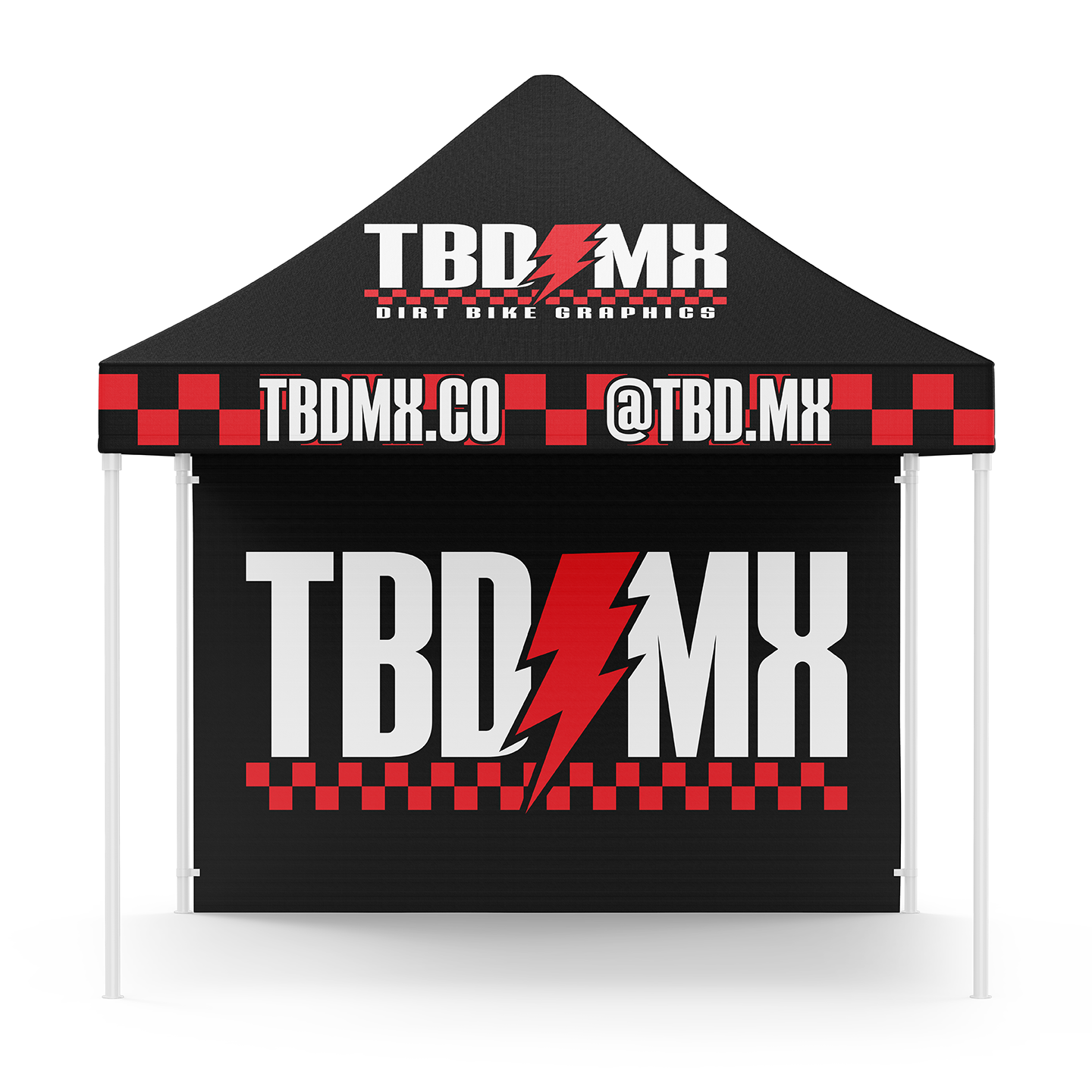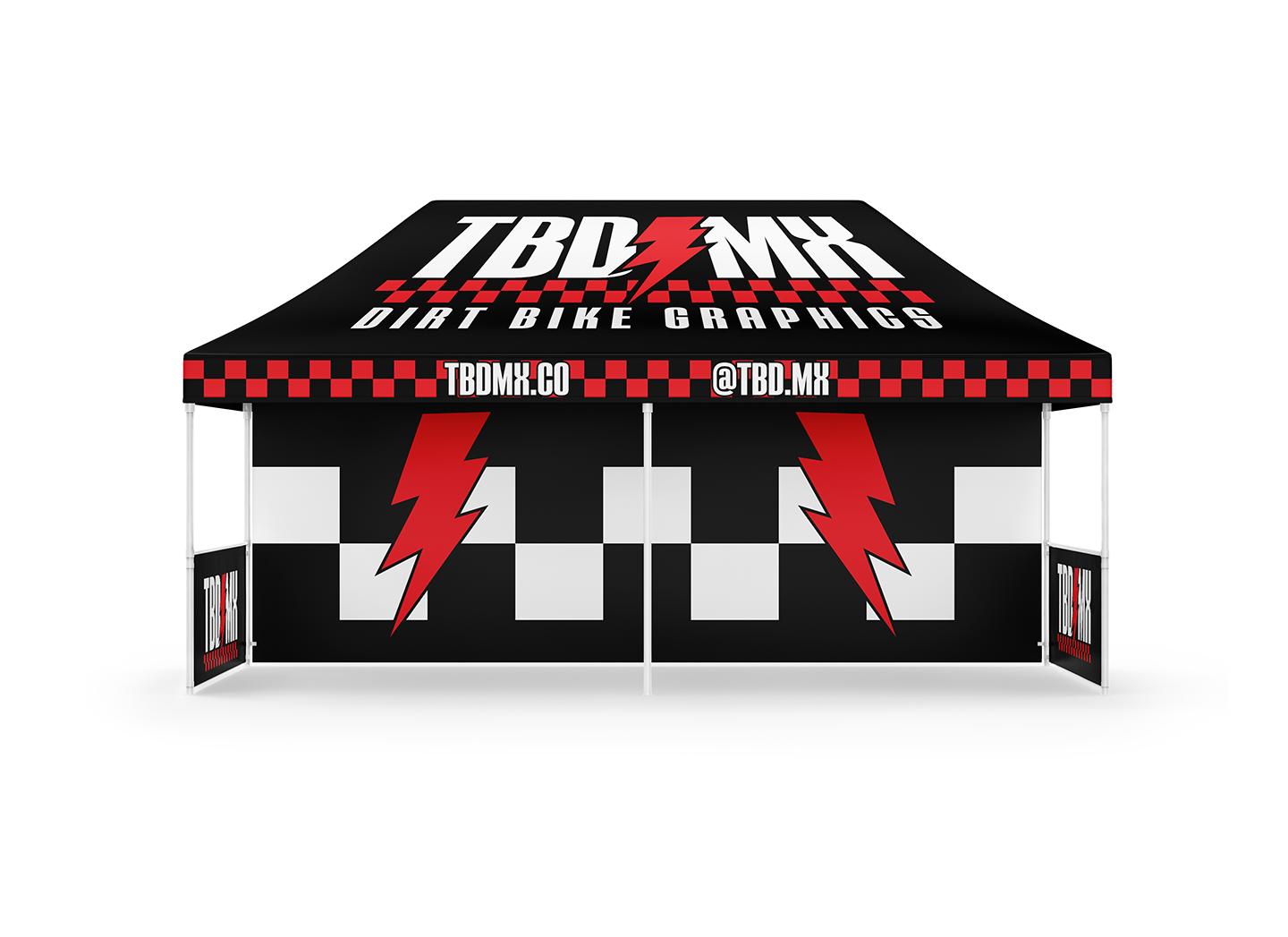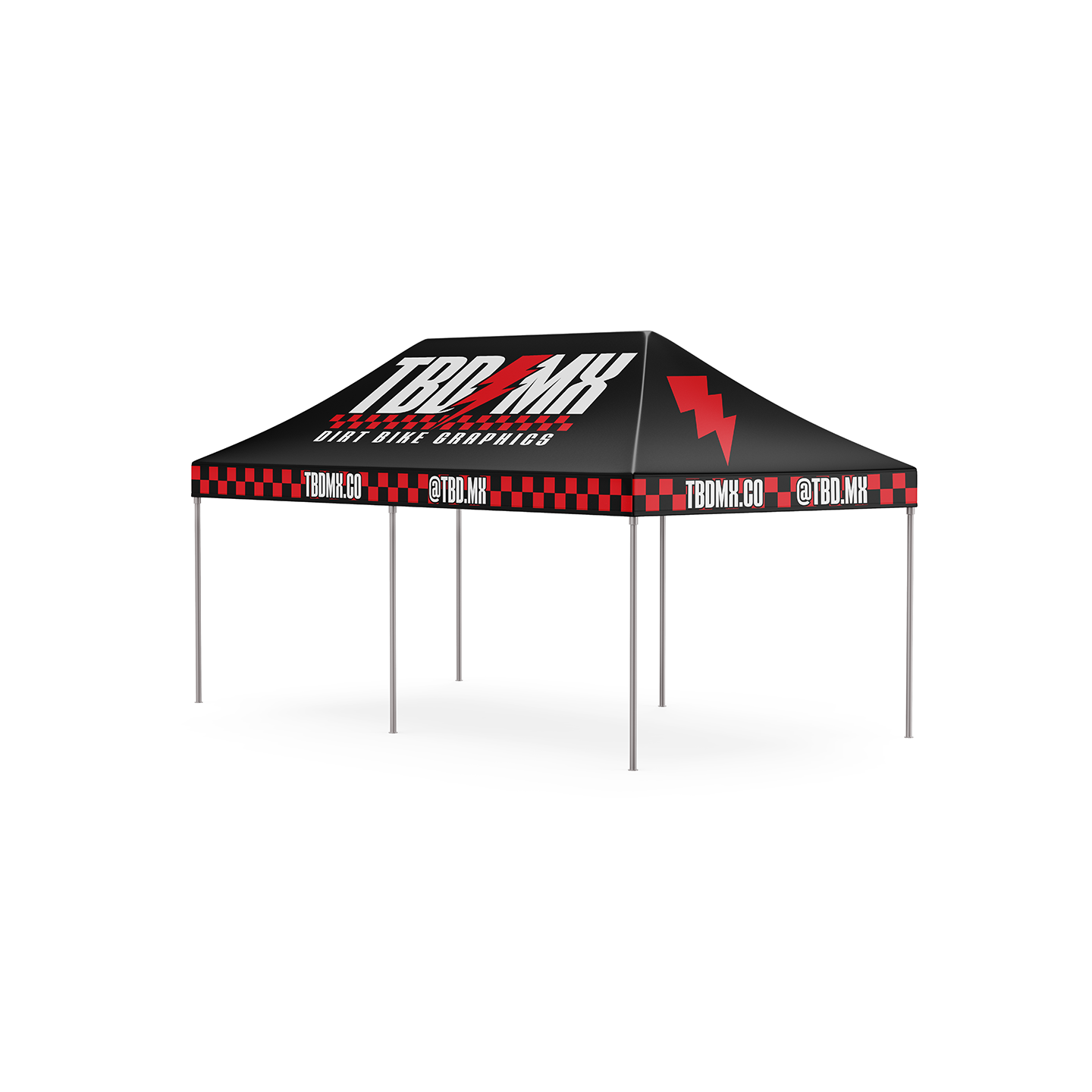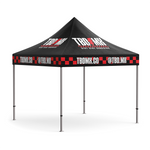 Custom canopy (POP UP) Tent is great to have on hot / rainy days at the track or desert. Achieve 360 degrees of branding with a custom full fabric dye sub canopy and hardware package.