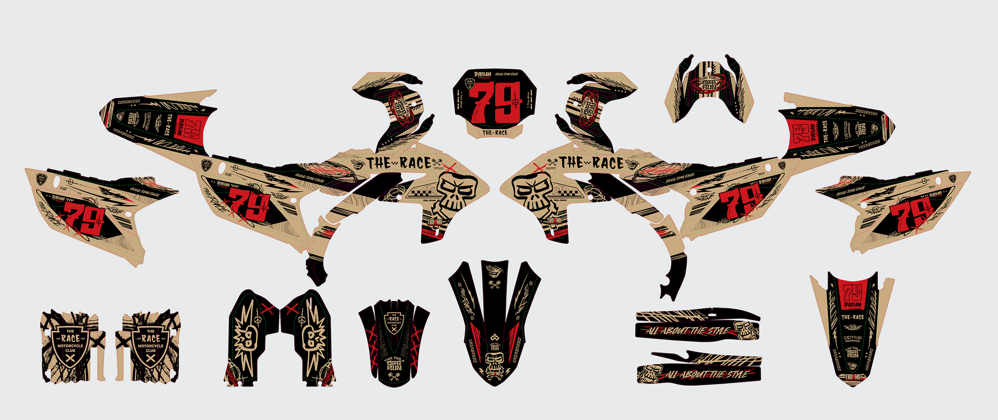 Our kits are designed for riders by riders. We use Substance Inc 21 Mil substrate/laminate and HP Latex Printers for the highest quality kits available.